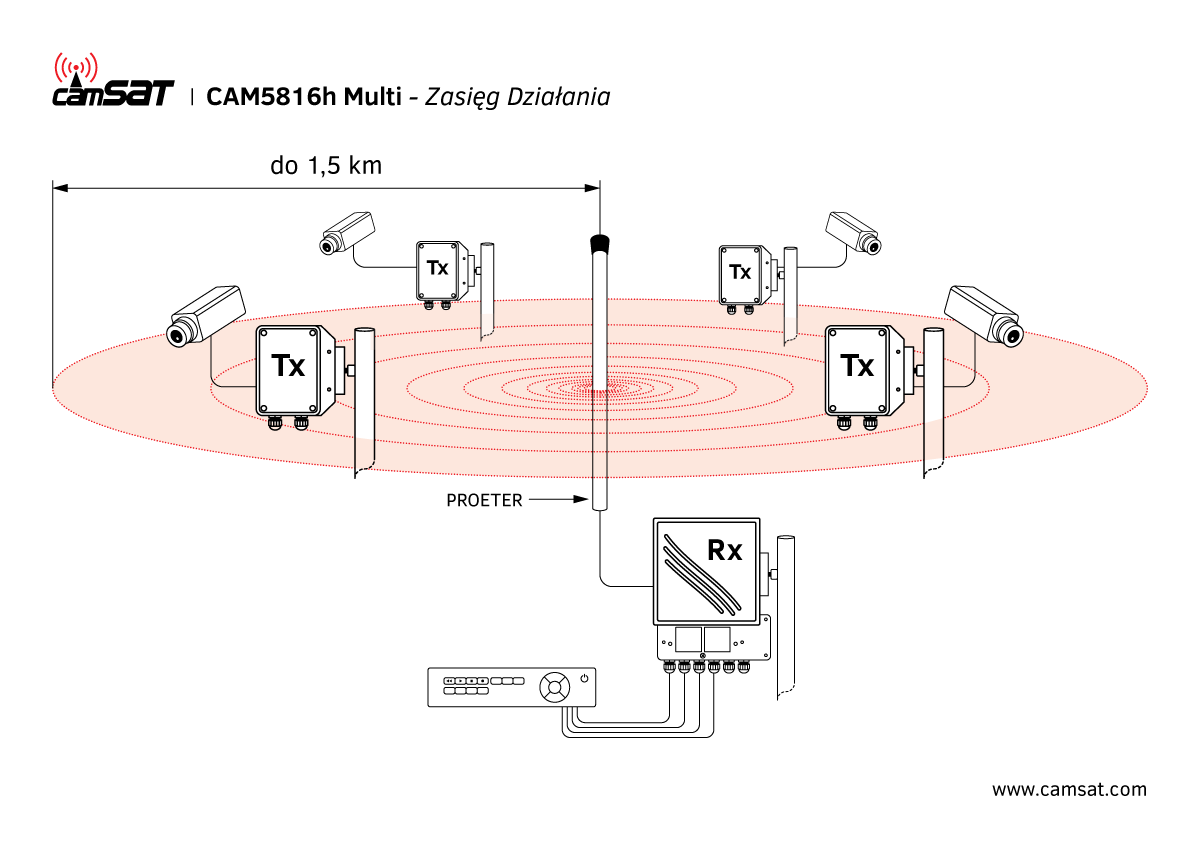 CAM-5816h Multi to bezprzewodowy zestaw do jednoczesnej transmisji czterech sygnałów wideo oraz ośmiu sygnałów audio. Zestaw pozwala na redukcję ilości wymaganych zestawów urządzeń w systemie bezprzewodowym aż czterokrotnie. Jest to szczególnie istotne przy zmniejszaniu kosztów monitoringu, ale także przy montażu takich systemów. Do tej pory system monitoringu obsługujący osiem kamer bezprzewodowych wymagał zastosowania ośmiu zestawów. Dzięki zastosowaniu zestawu CAM-5816 Multi możliwe jest zmniejszenie ich ilości do dwóch zestawów. Należy szczególnie podkreślić iż jest to rozwiązanie innowacyjne na skalę kraju, a działania prowadzone w tym kierunku były zainicjowane wieloma zapytaniami ze strony klientów.